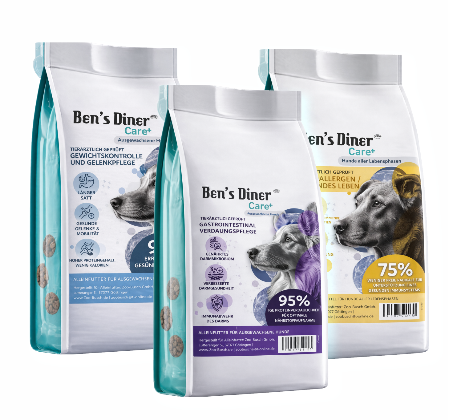 Ben’s Diner Care+ wurde speziell für Hunde entwickelt die besondere Ansprüche an ihre Ernährung haben, sei es durch Futtermittelallergien, Zahnproblemen oder einer unruhigen Verdauung.
