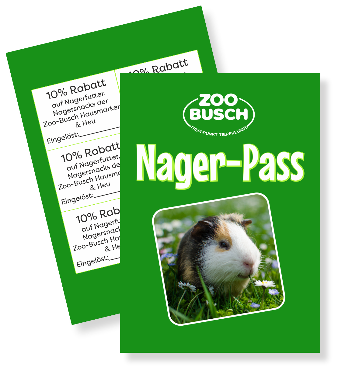 Beim Kauf eines Kleintiers & der passenden Erstaustattung in Höhe von mind. 50 € bekommst Du bei uns einen Nager-Pass.