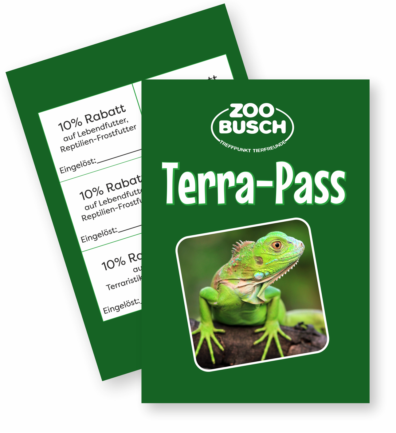 Beim Kauf eines Terrarienbewohners & der passenden Erstaustattung in Höhe von mind. 150 € bekommst Du bei uns einen Terra-Pass.