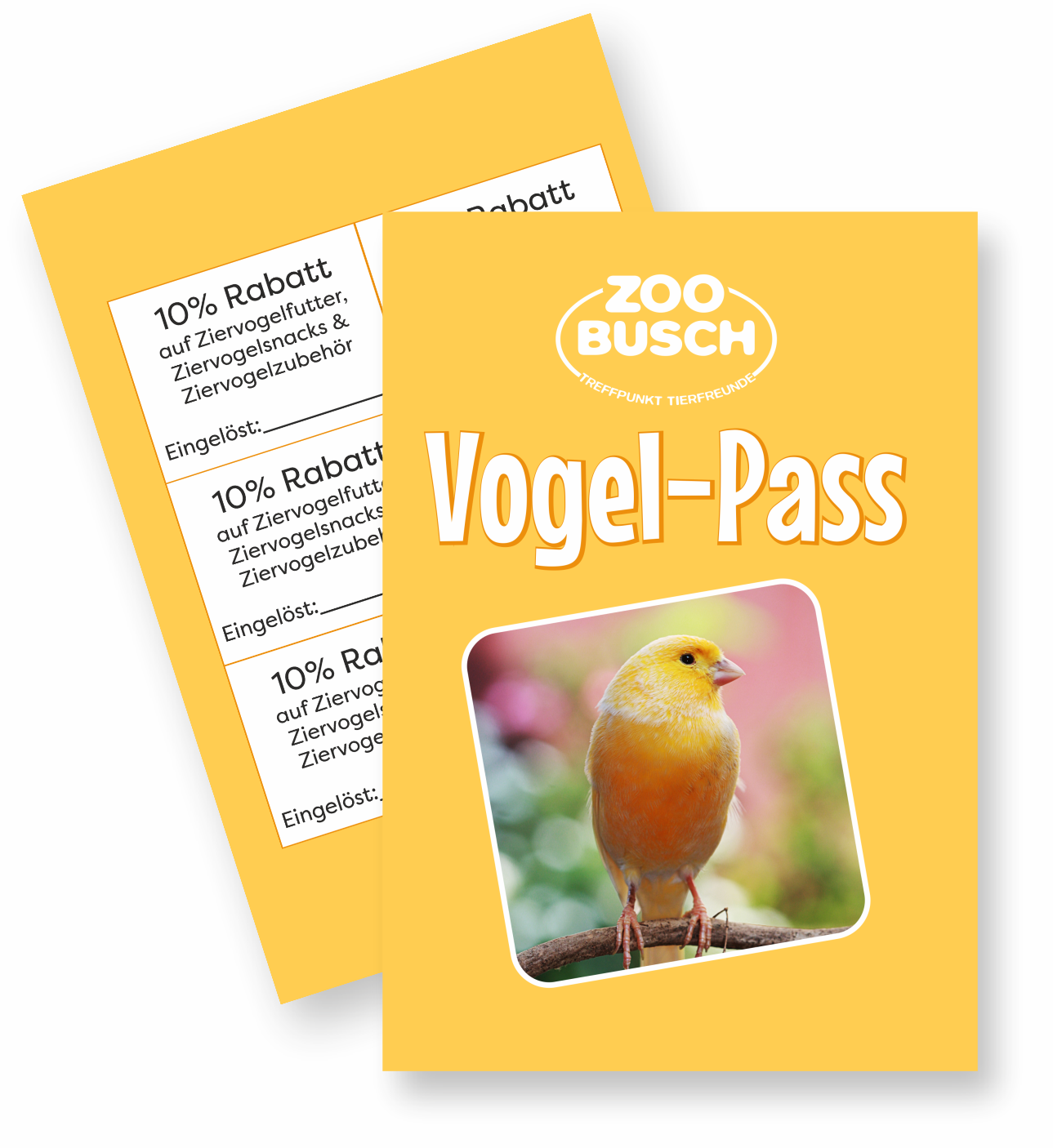 Beim Kauf deiner Ziervögel & der passenden Erstaustattung in Höhe von mind. 100 € bekommst Du bei uns einen Vogel-Pass.